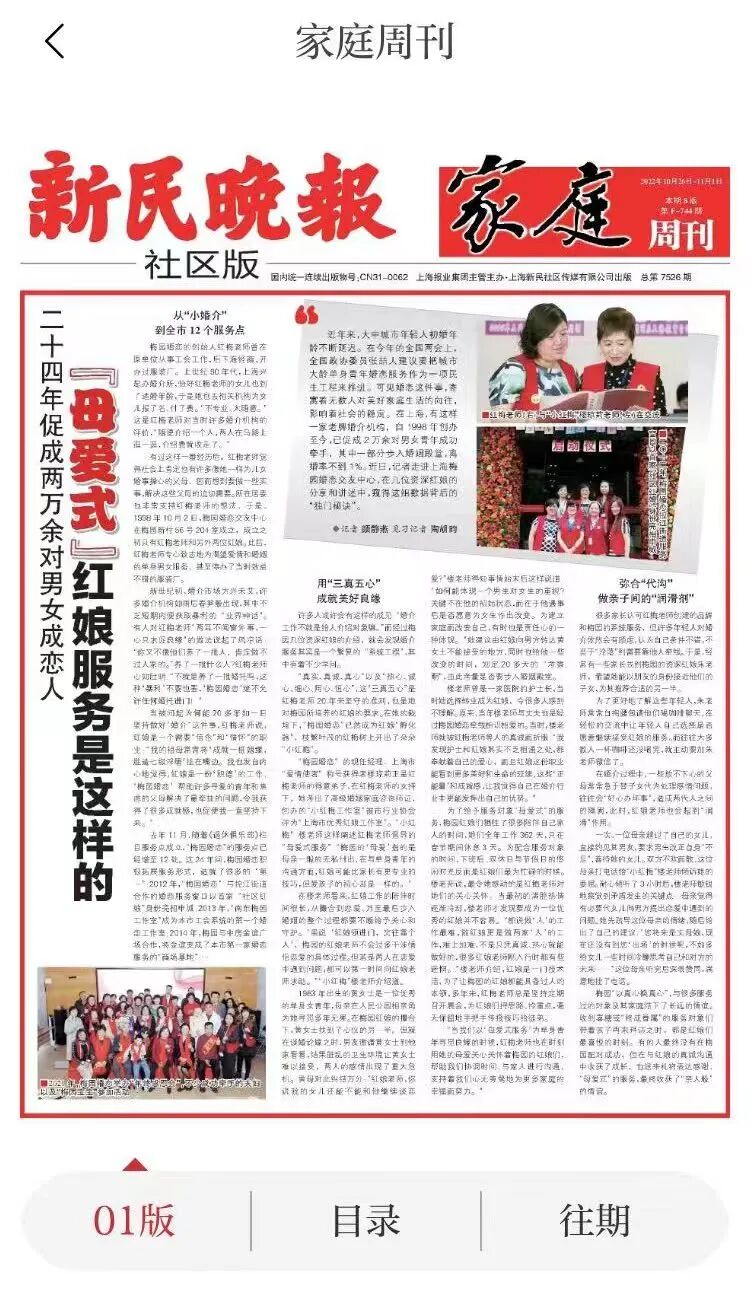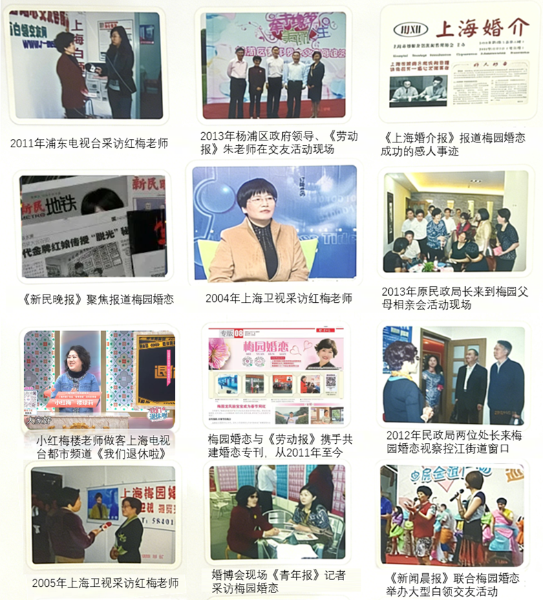 - 上海卫视、浦东电视台等多家电视台,及《劳动报》《新闻晨报》等权威纸媒,持续采访报道梅园婚恋;
